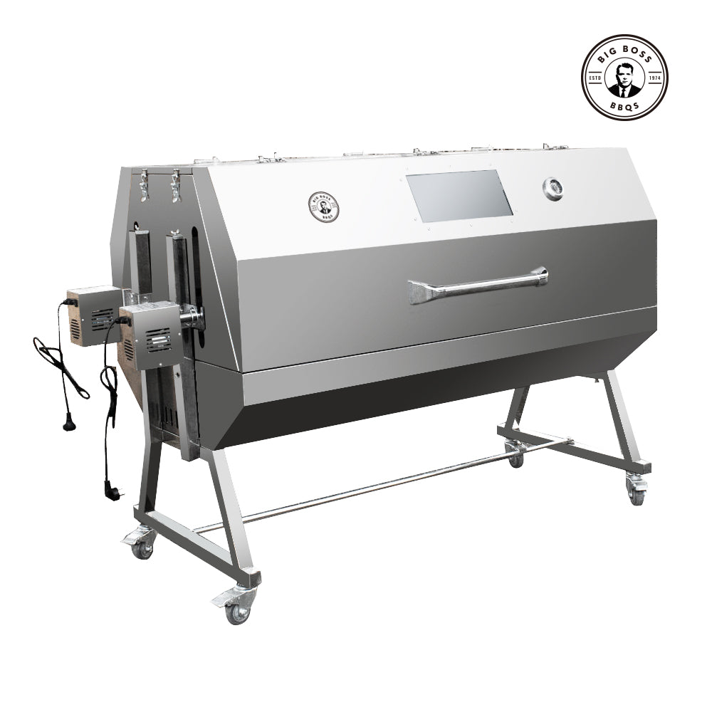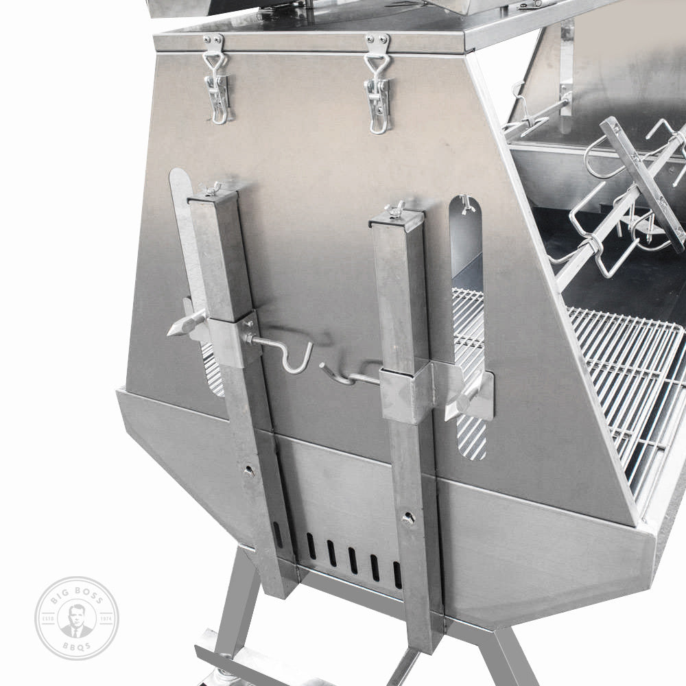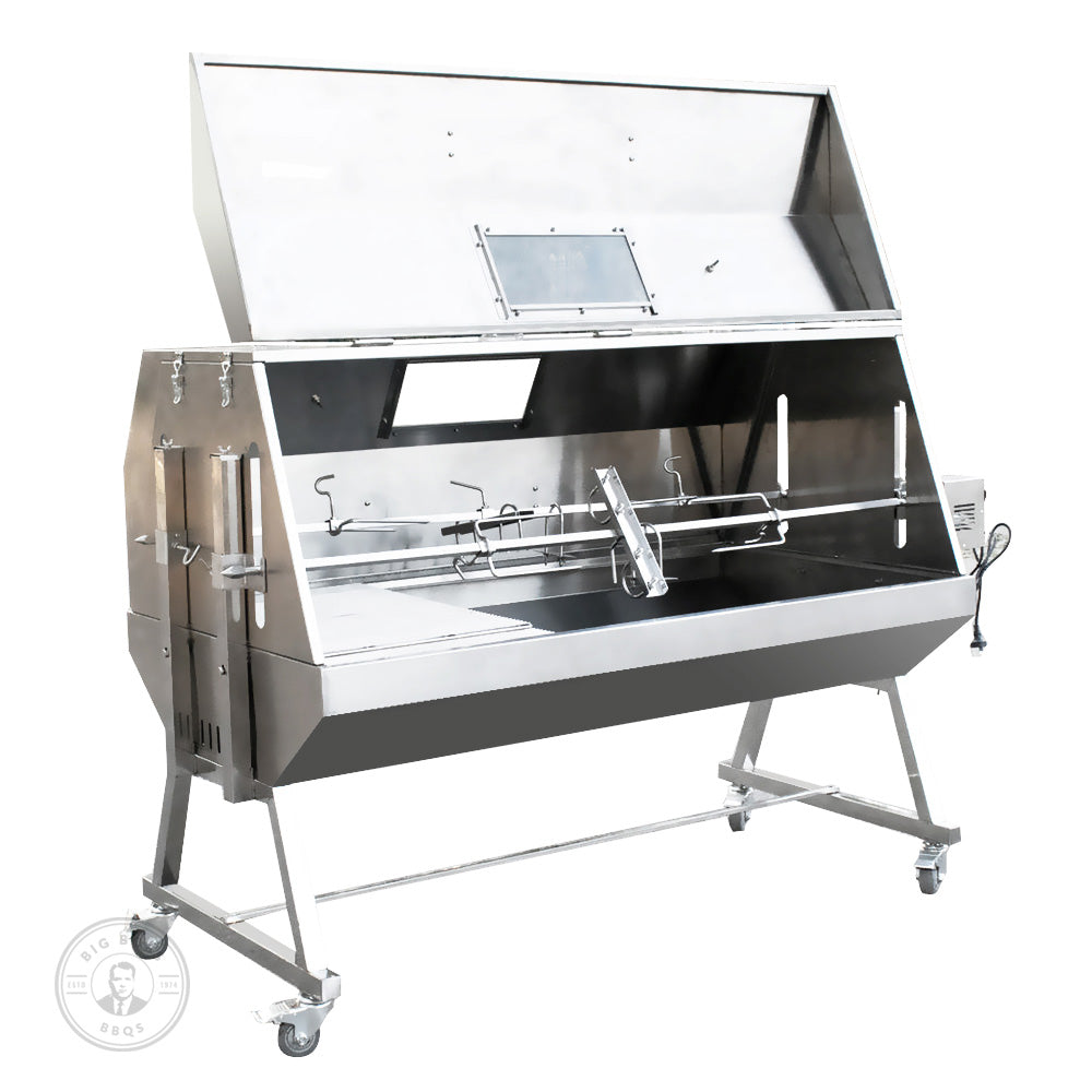Large Stainless Steel Charcoal Outdoor BBQ Rotisserie - ideal for large groups or commercial use.